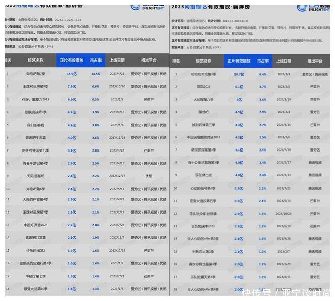 本年综艺网播前两名的正片灵验播放量较之2022年再度下滑。